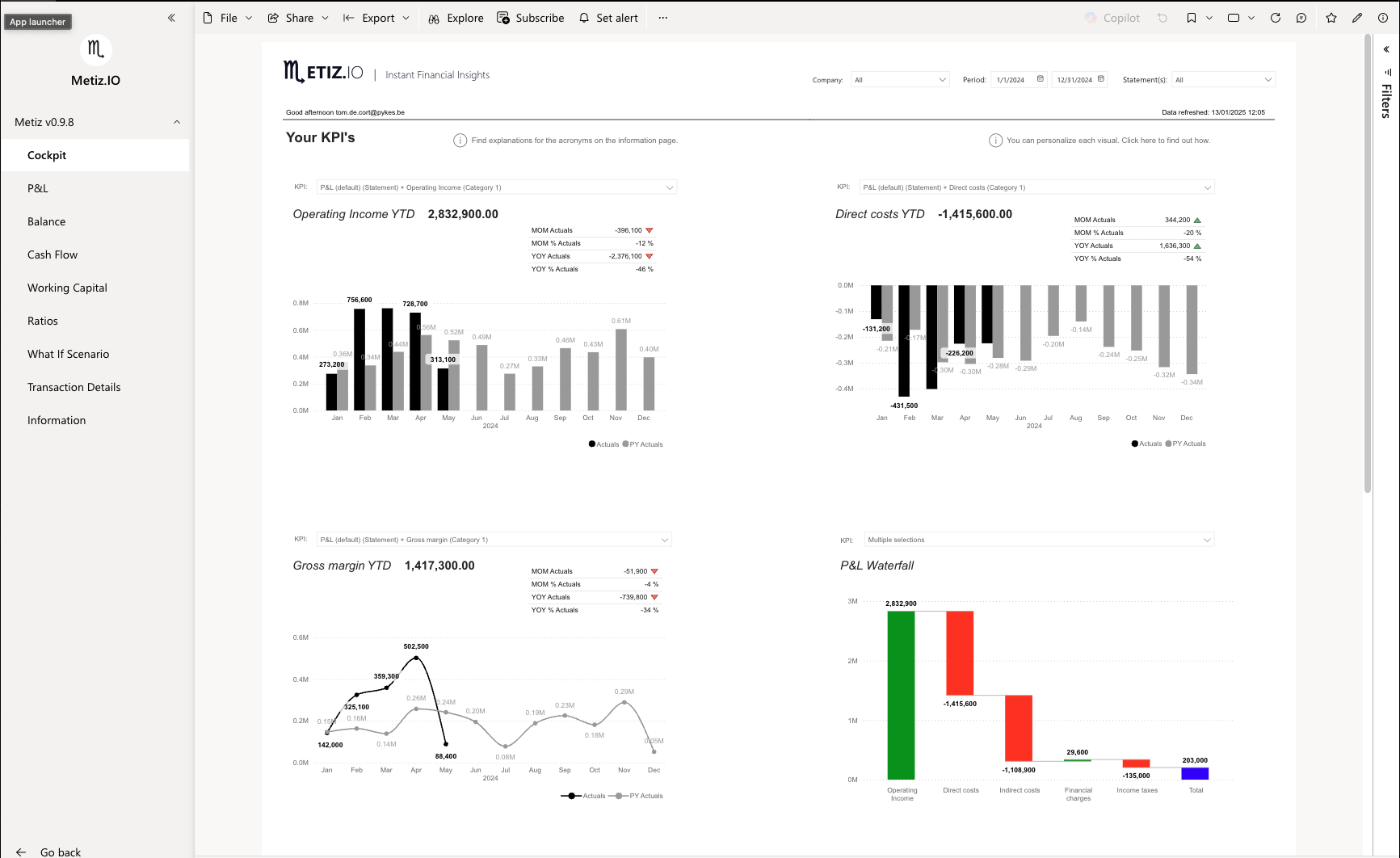 It's as simple as saying bonjour. Set-up the app in your Power BI-tenant once, choose your plan and have your financial dashboards at hand within minutes. As from now, you work on up-to-date figures, no need to wait for accountants or expensive consultants to deliver. Oh, and your data is your data. We don't store, we connect.